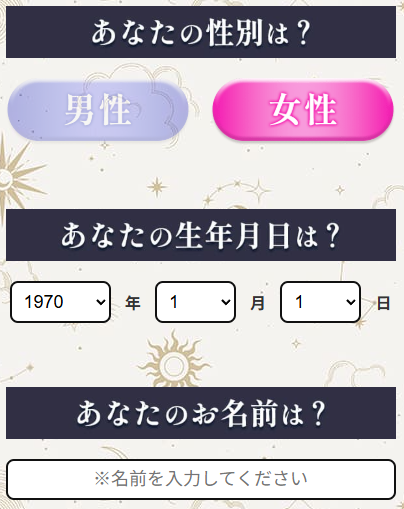 性別や誕生日、名前などを入れて、メールを送信するだけです!